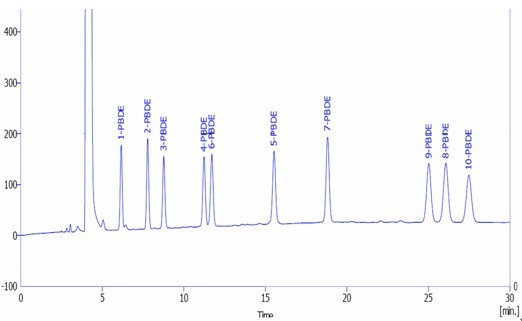 10种多溴联苯醚标准规范夹杂着悬浊液谱图: