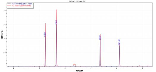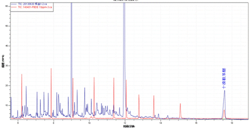 样品管理TIC图(乳白色)与多溴联苯醚混标TIC图(乳白色)
