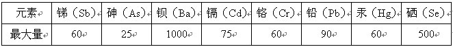而对易被婴儿吞食的涂料上或机件,没有危害的设计化学元素的分量应合理上表提起,其浸提量还应低于或乃是下表格中出错设计化学元素的最好避免过量提起。
