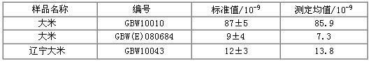 用这几种我国规范了大米饭样件中止样件消解及样件公测,公测作品如表1如图: