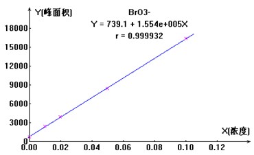 由尝试数据可知,离子色谱法测试水中BrO3-阴离子精确度高,检出浓度低,体例简略快速,完整知足环保行业对水中BrO3-离子检测的需(xu)要。