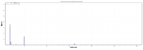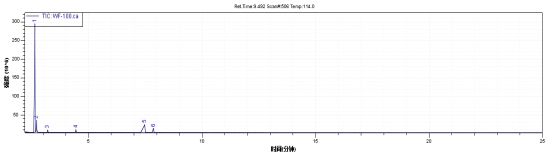 将样品用乙酸乙酯浓缩适合倍数后,精确吸收1µl溶液停止测试,谱图和检测成果以下