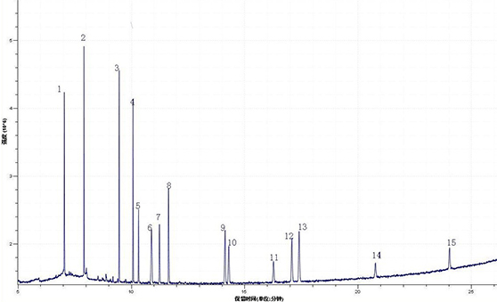 3.1 15种塑化剂参杂标准溶剂总铁离子流监测网图(TIC)接下来如图所示: