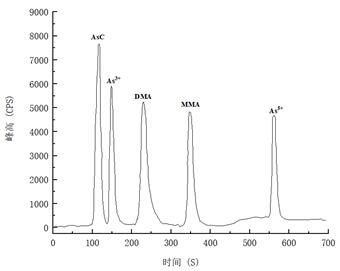 图4. 5.0µg/L多种砷样式形态的掺杂规则稀硫酸色谱图