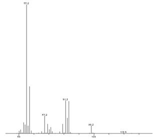 甜美素的(de)首要衍生物环己(ji)醇亚硝酸酯作为(wei)🧜定(ding)性(xing)和(he)定(ding)量,如图1。保留时候8.511min.定(ding)性(xing)离子(m/z)为(wei)55,81,83。定(ding)量离子为(wei)55。质谱图见图2.